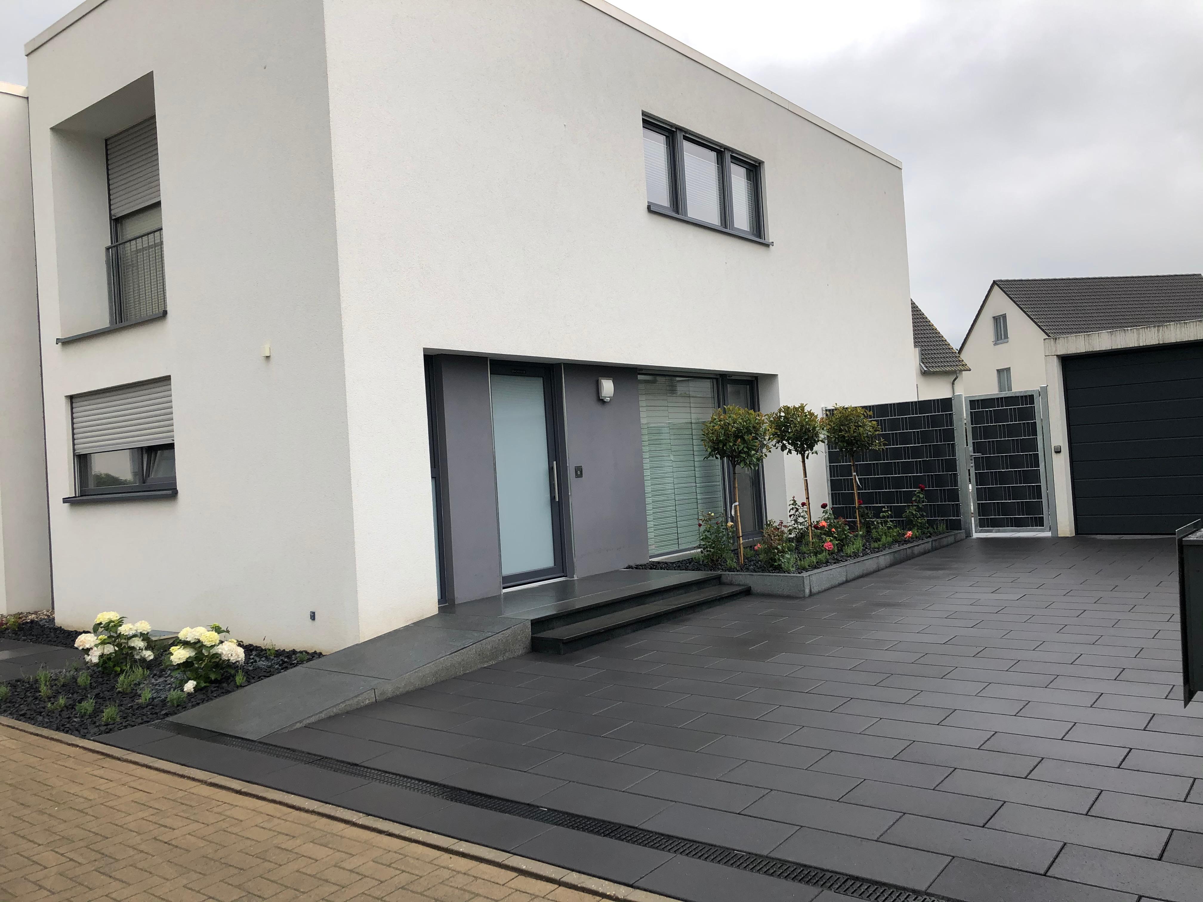 Zu Unrecht ist die klassische gegossene Betonterrasse ein wenig in den Hintergrund getreten. Dabei hat sie unbestreitbare Vorteile: Sie ist enorm stabil, beständig, einheitlich und kann eine markante Stilaussage tätigen. Dabei muss sie nicht einmal wuchtig aussehen, denn auch ebenerdige Terrassen lassen sich ohne Probleme bauen. Weil die damit verbundenen Arbeiten schweres Gerät erfordern, empfiehlt es sich, eine Betonterrasse gleich vom Profi planen und bauen zu lassen. Das Ausheben von Fundamenten, das Verfüllen mit Schotter und Flüssigbeton erfordern maschinellen Einsatz, die Herstellung einer glatten, rissfreien Oberfläche Erfahrung und Sorgfalt. Trotzdem ist der Bau einer Terrasse aus gegossenem Beton nicht zwingend teurer als andere Varianten. Wir können zum Beispiel auch in engen Verhältnissen gut arbeiten – mit Mini-Baggern und speziellen Entlademöglichkeiten für Betonmischer. Neben dem exakt ausgerichteten Gefälle kümmern wir uns um die nötige Tiefe und eine professionell aufgebaute Schichtung, um die fertige Terrasse vor Feuchtigkeits- und Frostschäden zu bewahren. Und wir haben vielfältige Möglichkeiten, die fertige Oberfläche zu veredeln: indem wir sie fräsen, schleifen, polieren, imprägnieren oder wachsen.