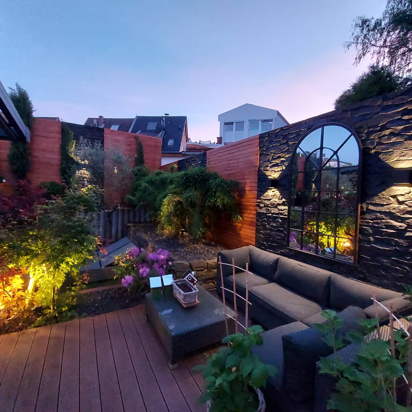 Terrassen aus Naturstein: Einzigartig wie die Natur selbst Die Terrassenverlegung mit Naturstein bietet Ihnen ein Unikat vor der Außentür. Kein Wunder, dass Natursteinterrassen immer beliebter werden: Sie haben die Wahl zwischen verschiedenen Sorten und genießen anschließend Tag für Tag ein Bild, das die Natur selbst für Sie gezeichnet hat. Gut verlegt ist eine Natursteinterrasse nahezu unvergänglich und steigert den Wert Ihrer Immobilie deutlich. Wichtig ist, dass der Stein frostsicher und zugleich fußfreundlich ist, Ihr gewünschtes Ambiente unterstützt und Halt auch bei Nässe gibt. Für den Außenbereich eignen sich harte Gesteine am besten: Basalt, Granit, Quarzit und Porphyr gehören zu den beliebtesten Arten. Granit ist eher hochpreisig, überzeugt aber dafür mit einem interessanten Farbenspiel von hellgrau über rosa, gelb oder bläulich bis hin zu tiefem Schwarz. Es ist ein sehr witterungsbeständiger, harter und säureresistenter Stein, der leicht zu pflegen ist. Besonders interessant ist seine grobkörnige Struktur, in die auch Glimmer eingebunden ist, so dass die Fläche teils Lichtreflexe wiedergibt. Naturbelassen gibt er besten Halt, poliert kommen die optischen Effekte deutlicher zur Geltung. Basalt ist ein dunkles Lavagestein mit gleichmäßiger Oberfläche und hervorragender Beständigkeit. Die Flächen wirken dezent und edel, ebenmäßig und elegant. Eine besonders interessante Wirkung erreichen Sie, wenn Sie Basalt mit hellen Randsteinen kombinieren. Zwar ist er recht pflegeintensiv, aber dafür sehr rutschfest und absolut frostsicher. Quarzit überzeugt mit einem ruhigen, dunklen Farbbild und großer Robustheit. Es ist ein besonders hartes und langlebiges Material, an dem Sie lange Ihre Freude haben werden. Weil das Gestein nahezu keine Flüssigkeit aufnimmt, treten kaum Flecken oder Schlieren auf. Ideal ist Quarzit für beschattete Terrassen oder für die Wetterseite des Gebäudes; zu viel Sonne kann es heiß werden lassen.